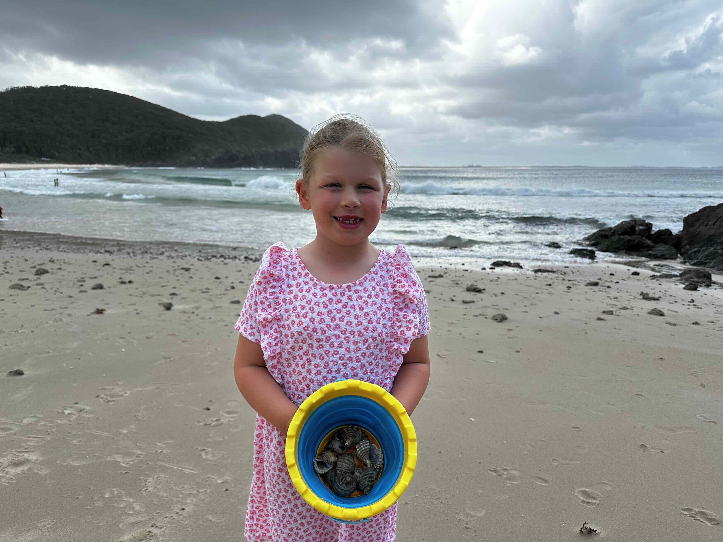 I’d found the perfect drill bit, the right twine; everything tested out well at home…. but then… when we went to the beach with all of our mates, we found zero shells… for three days straight!