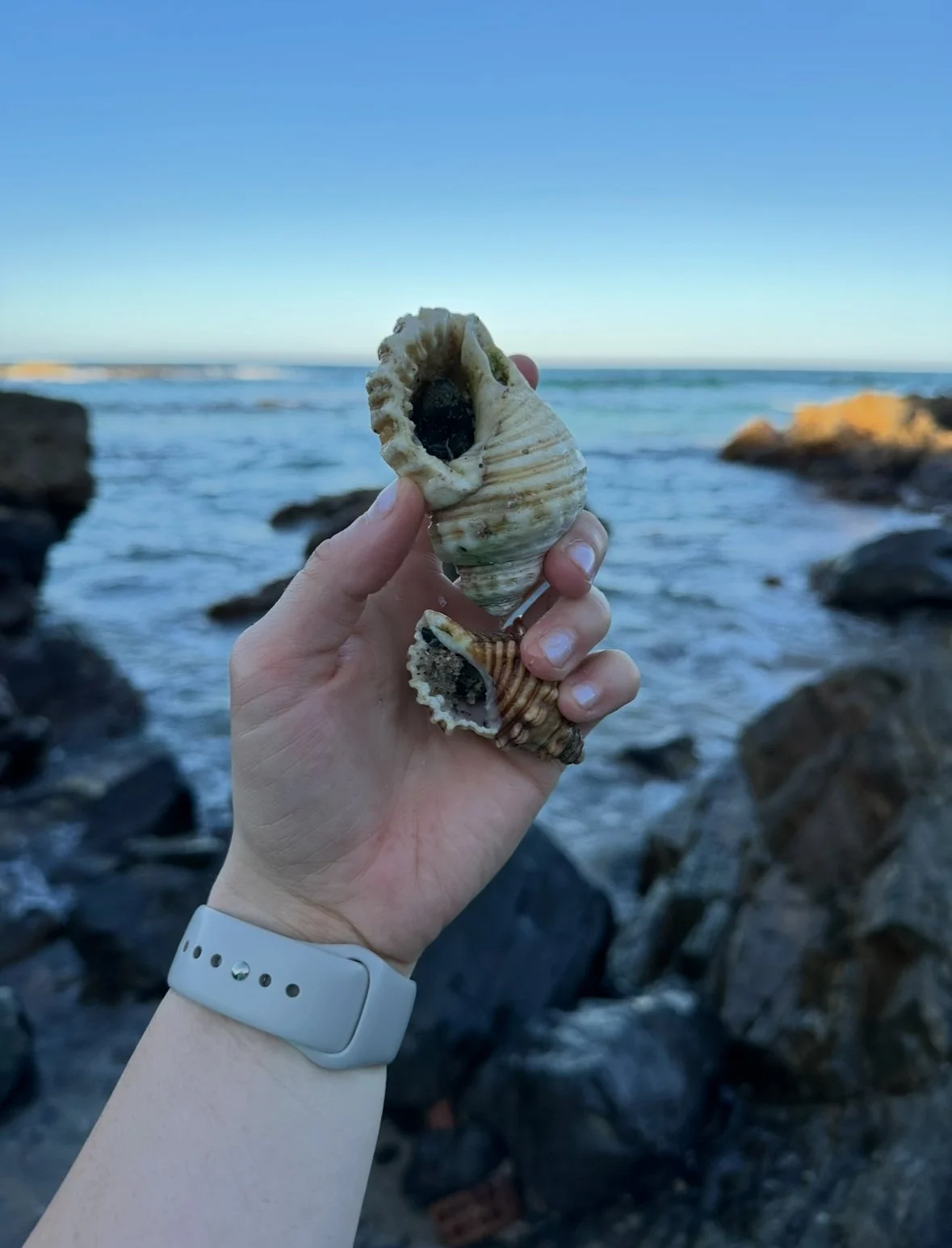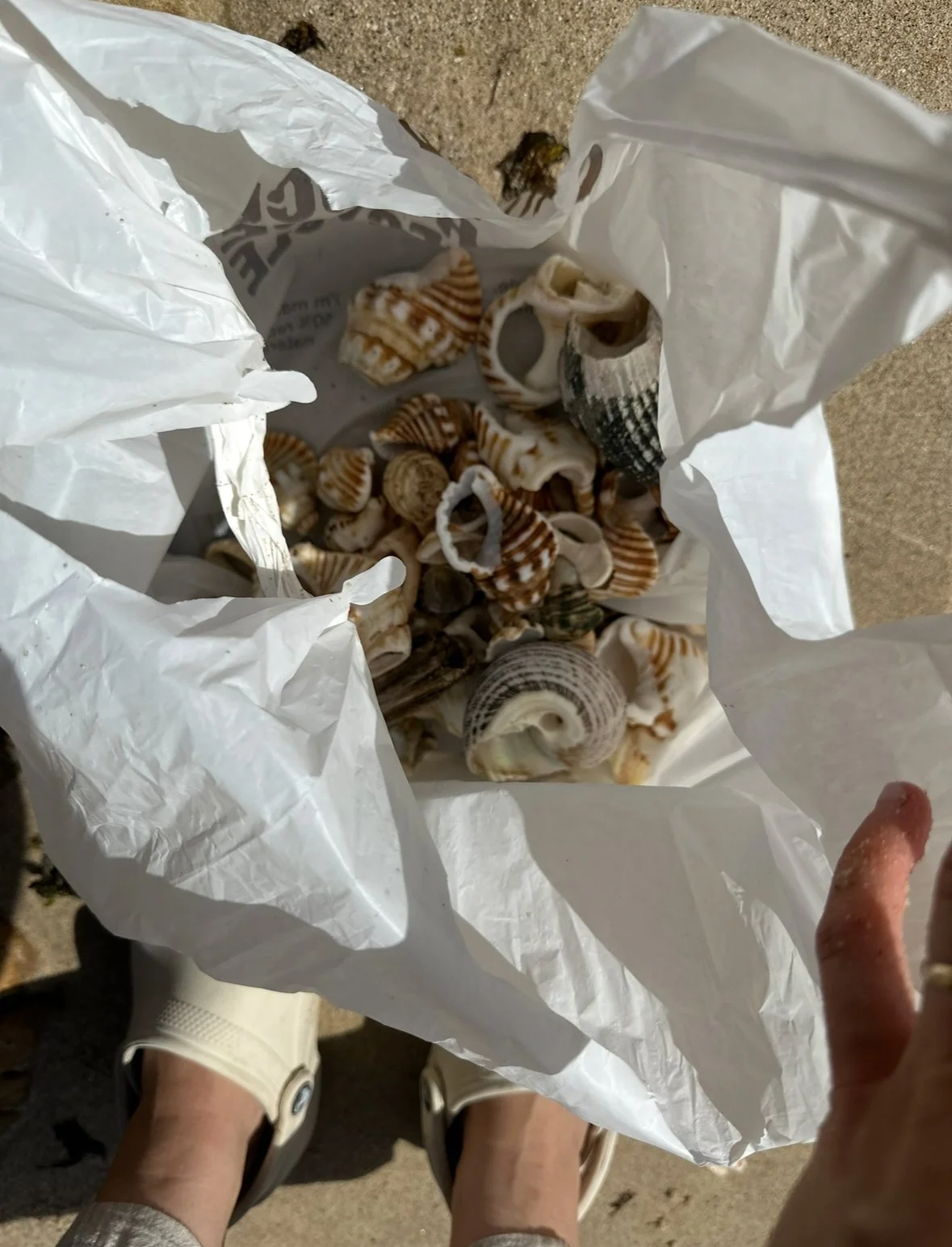 In December of 2024 we went to Elizabeth Beach for a week and when we were packing up the car our trunk was a museum of shells squeezed into sandy plastic berry punnets. I may or may not have embarked on a journey to a local nude beach (eyes down of course) to look for shells as the internet promised that any beach called “Shelly Beach” is worth a look-see and it did NOT disappoint! Anyway….